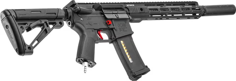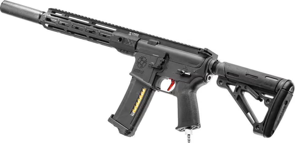 The Umbrella Armory EMAG is a compact, high-performance HPA (high-pressure air) airsoft rifle built around an electromagnetic HPA engine and a programmable fire-control unit — designed for instant trigger response, high efficiency, and long, consistent range.